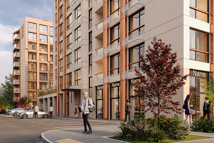 Сучасні 9-поверхові будинки в серці активної інфраструктури.